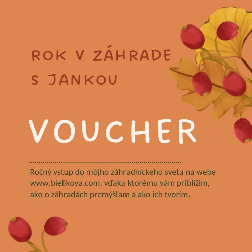 Po zakúpení vouchera, vám prídu na mail prihlasovacie údaje do členskej sekcie Roku v záhrade s Jankou. Nájdete tam inšpiratívne články, kalendár prác, ale aj online herbár rastlín, ktoré sama pestujem alebo ich používam pri realizáciách záhrad. Súčasťou obsahu sú aj video poradne, kde odpovedám na vaše najčastejšie otázky. Berte, prosím na vedomie, že obsah bude pribúdať každý mesiac, a tak tam po prihlásení nájdete iba jeho časť. O všetkých novinkách na webe a o aktuálnych záhradníckych prácach vás budem dopredu informovať prostredníctvom Newsletteru. Nemusíte sa však báť preplnenej mailovej schránky - súhrn noviniek vám príde zhruba dvakrát za mesiac.
